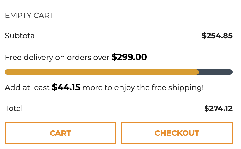 - Free shipping is automatically applied to orders totaling $300 or more.