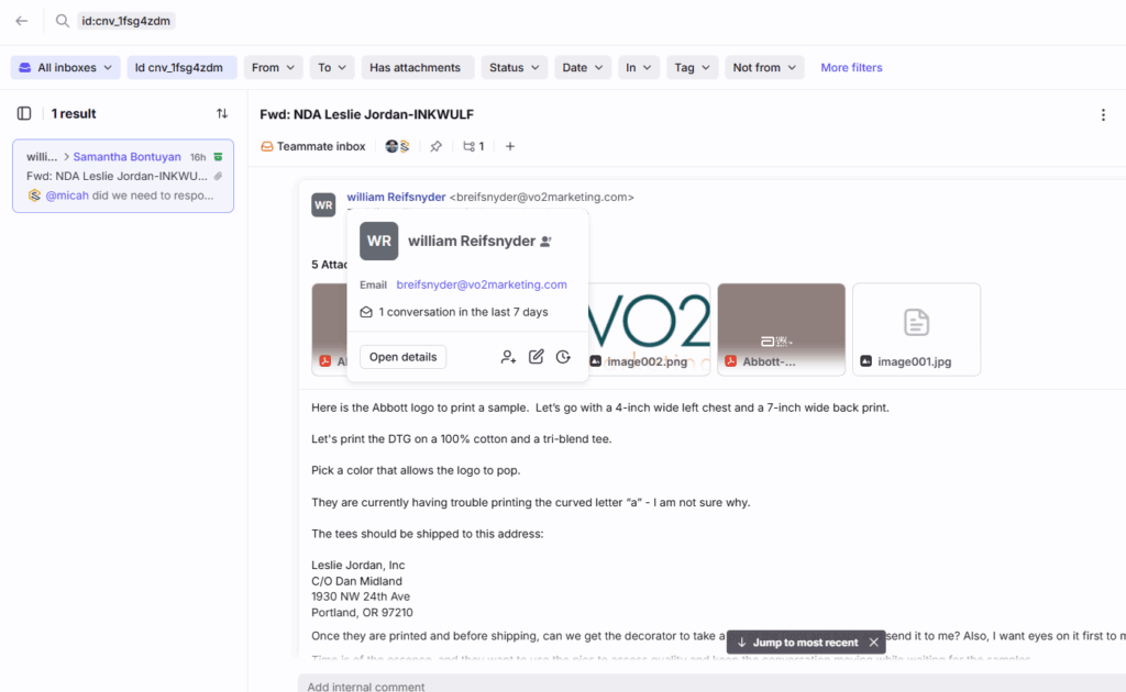 - For samples or test prints, confirm with Mica which garment type to use if colors differ (e.g., “Vintage Black” instead of “Black”).