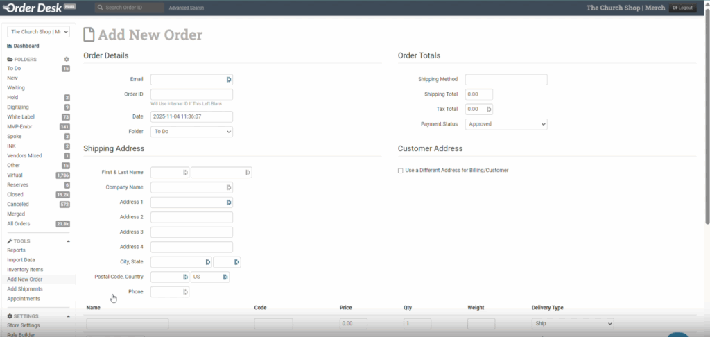 These orders are not placed through a client’s shop or normal checkout process but instead, they’re manually created inside Order Desk for individual customers.