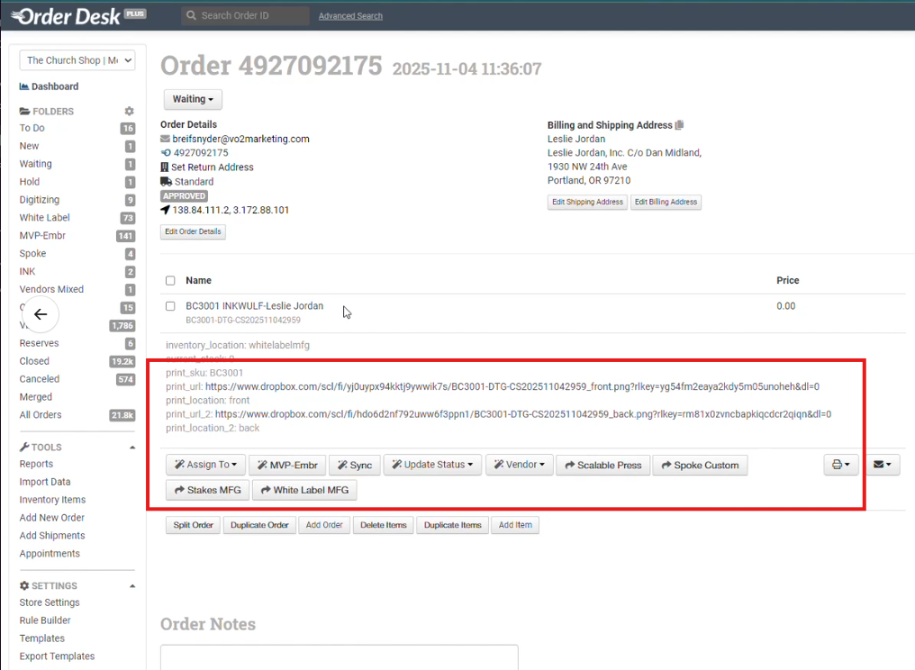 | Order Folder | Determines workflow stage | Use “Waiting” until reviewed |