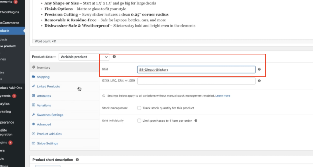From there, begin copying over the key product information from StickerBeat.