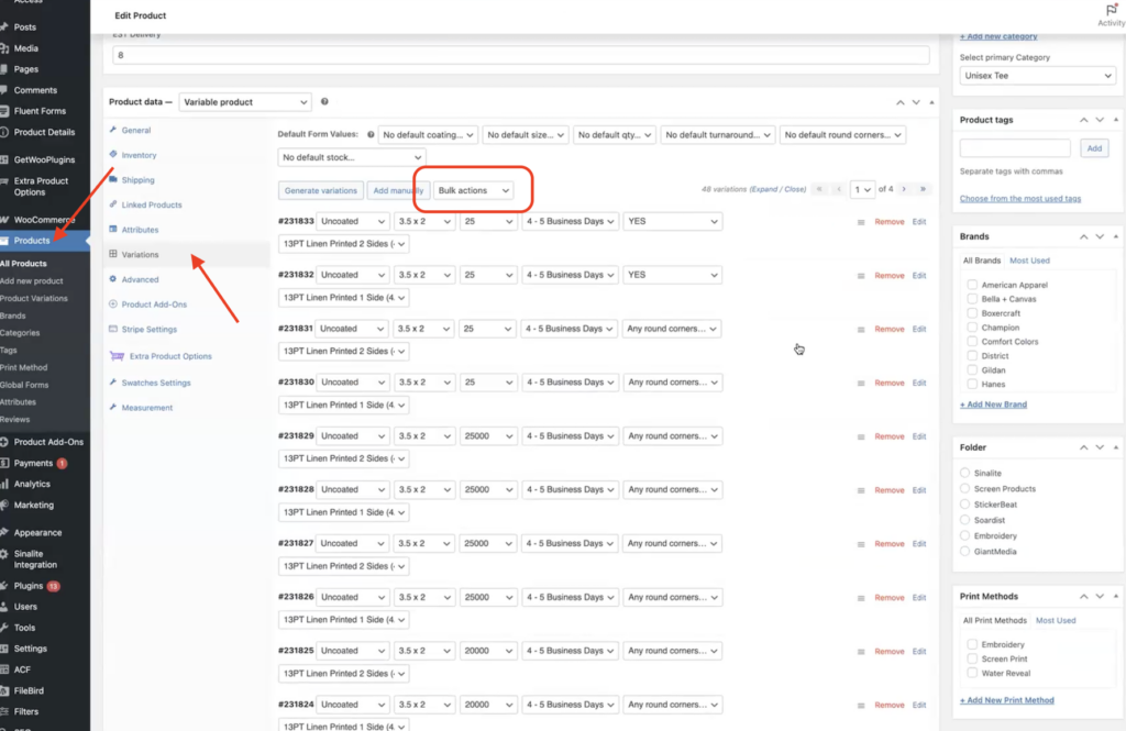 Instead of adjusting each variation individually, you can apply the markup using Bulk Actions.