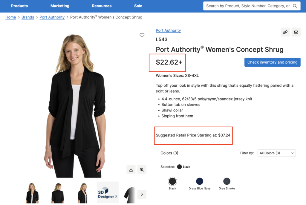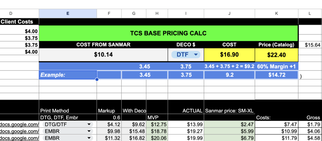 ☐ Enter the SanMar base price into the pricing calculator